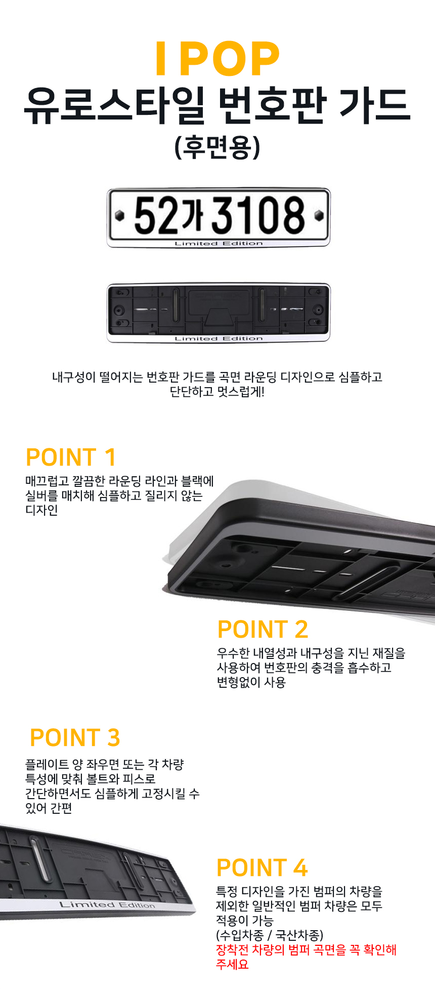 모델 카렉스 아이팝 유로스타일 번호판 가드 VER1 후면용