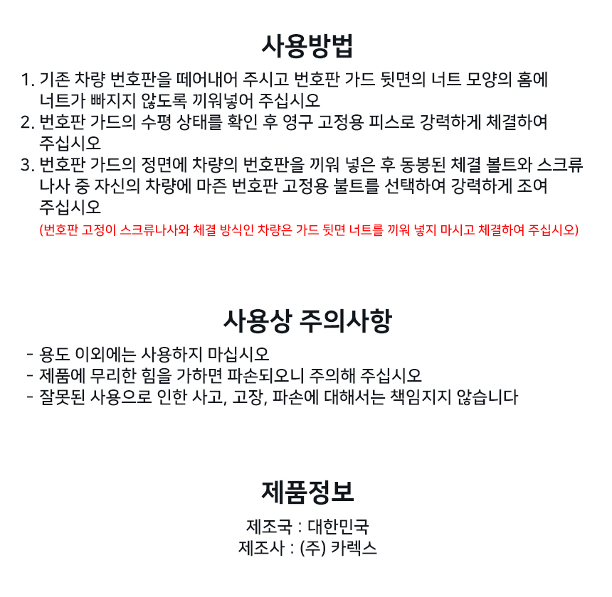 카렉스 아이팝 유로스타일 번호판 가드 VER1 후면용 1P 요약정보 및 구매