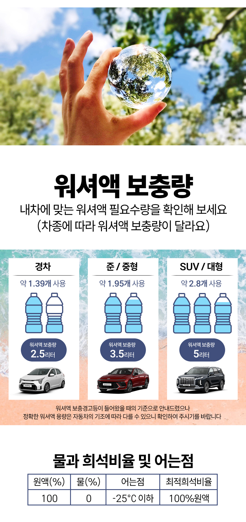 모델 케이엠씨 자동차 사계절 에탄올 워셔액 1.8L