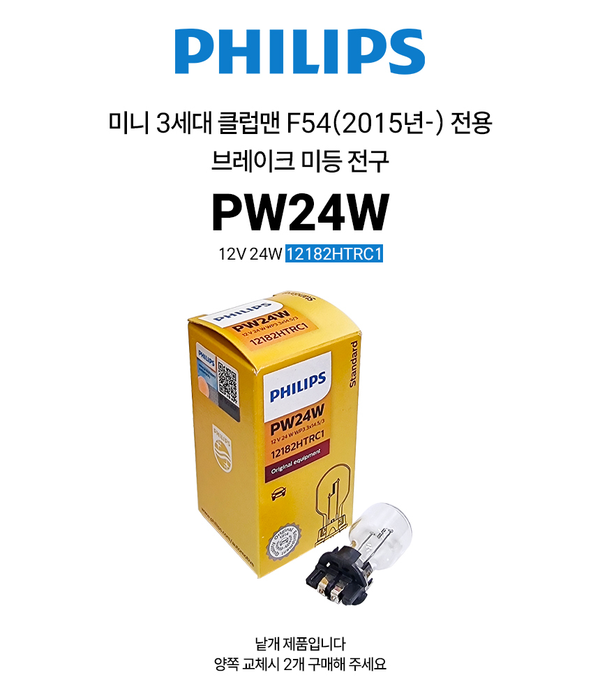 필립스 PW24W 12V 24W 미니 3세대 클럽맨 F54(2015년-) 전용 브레이크 미등 전구 12182HTRC1 요약정보 및 구매