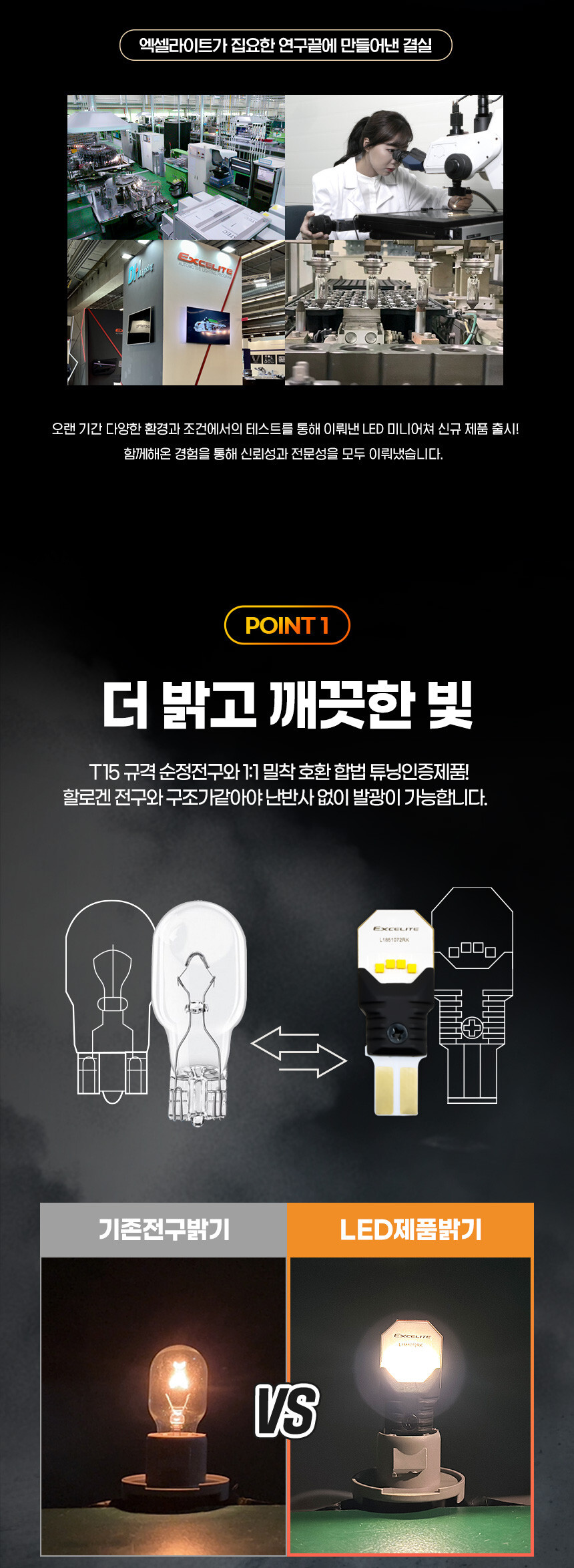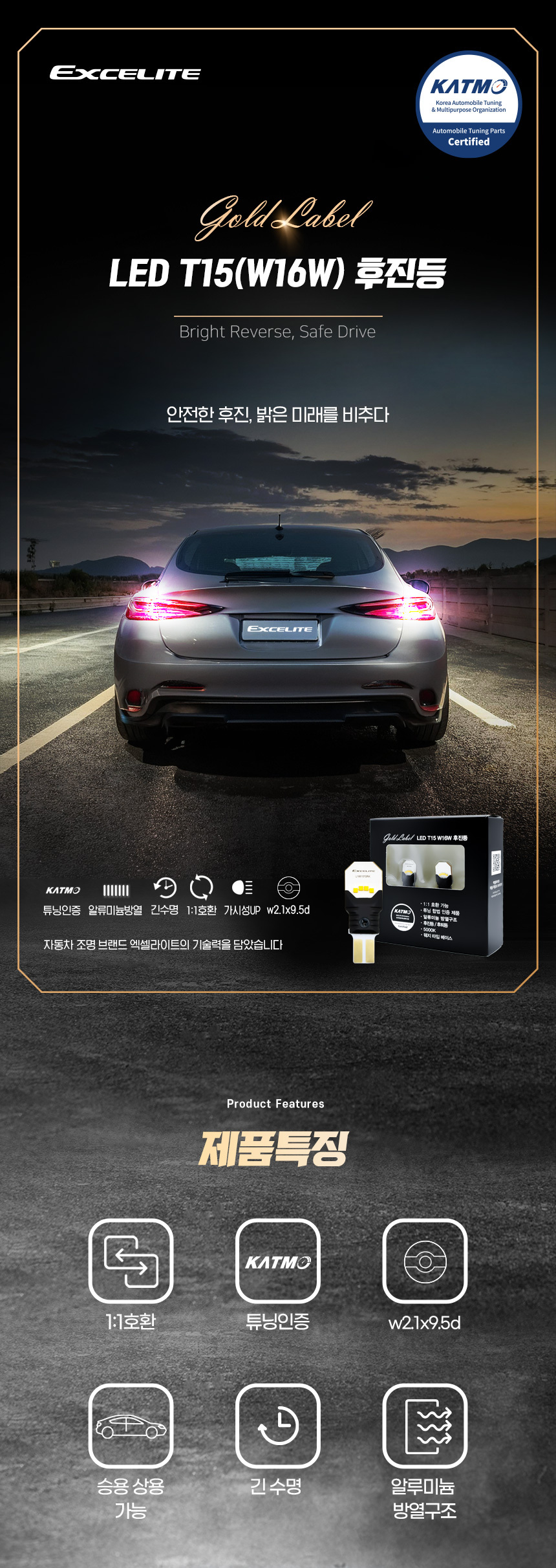 모델 엑셀라이트 합법튜닝인증 LED T15 12V W16W 5000K 웨지타입베이스 후진등 후퇴등