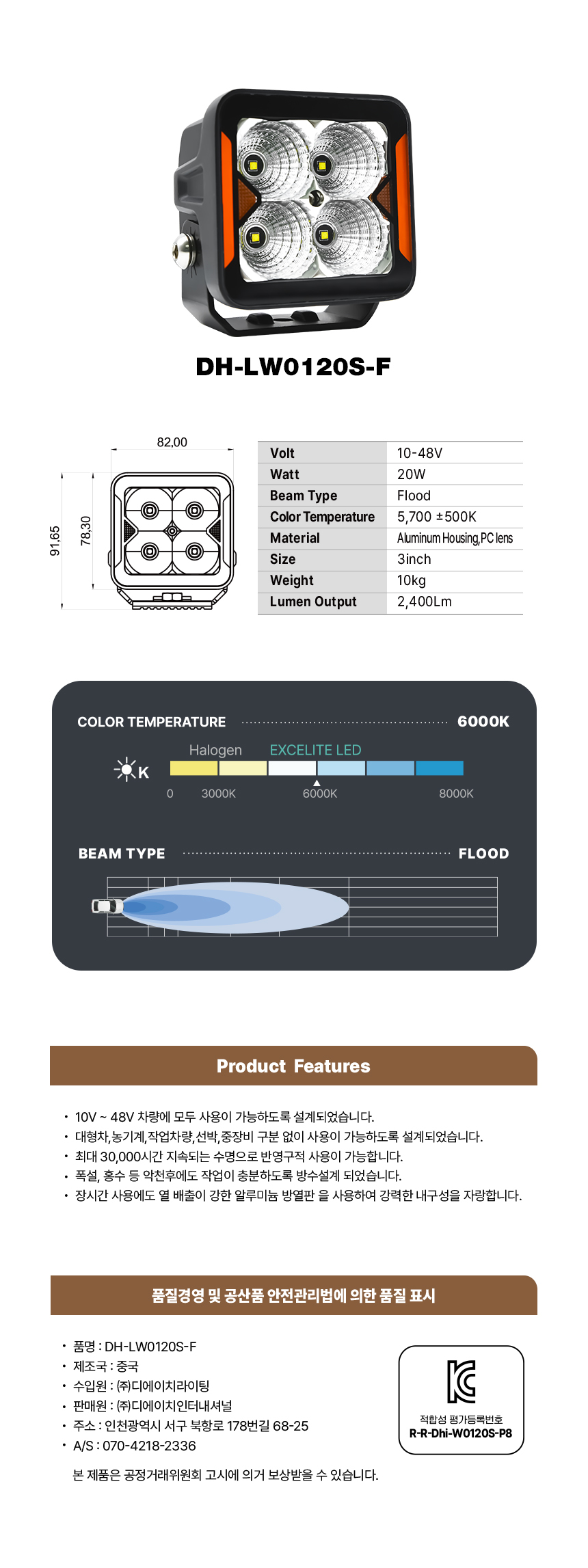 엑셀라이트 국내개발 써치라이트 집어등 선박용 차량용 DC12V_40V 3000LM 확산형빔 요약정보 및 구매