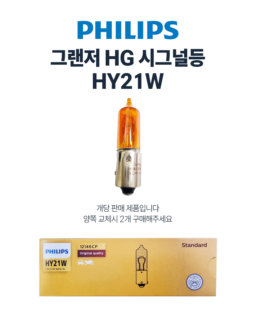 필립스 HY21W 12146CP 그랜저HG 전용 방향지시등 깜빡이전구 시그널램프 낱개 1개 요약정보 및 구매
