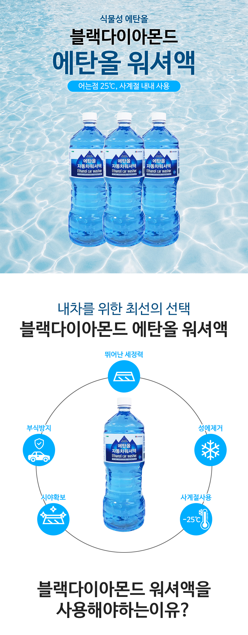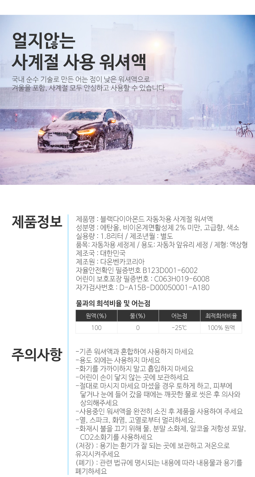 블랙다이아몬드 자동차 사계절 에탄올 워셔액 1.8L, 6개 총10.8L 어는점이 낮은 워셔액 요약정보 및 구매