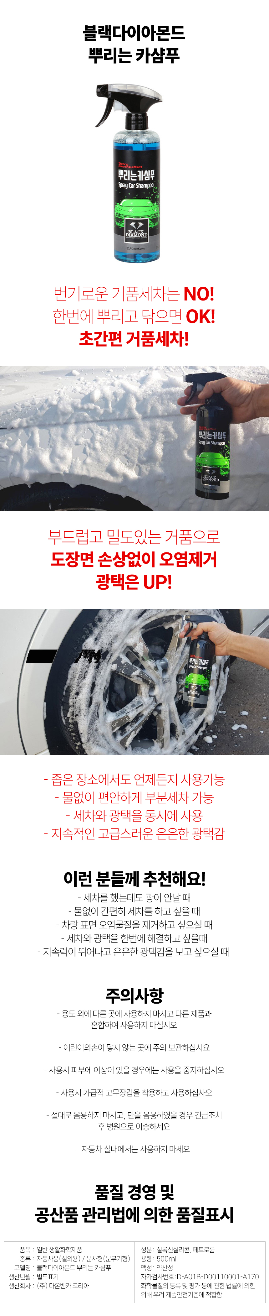 블랙다이아몬드 뿌리는 카샴푸 500ml 셀프세차용품 자동차 오염제거 요약정보 및 구매