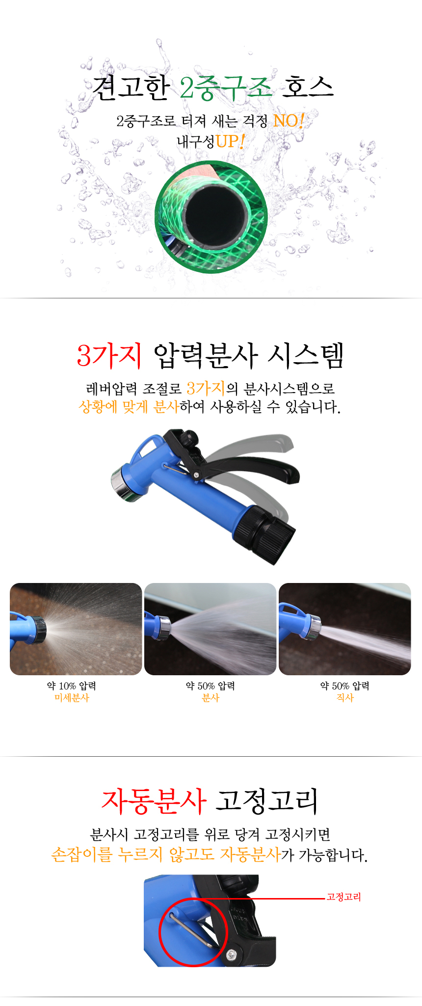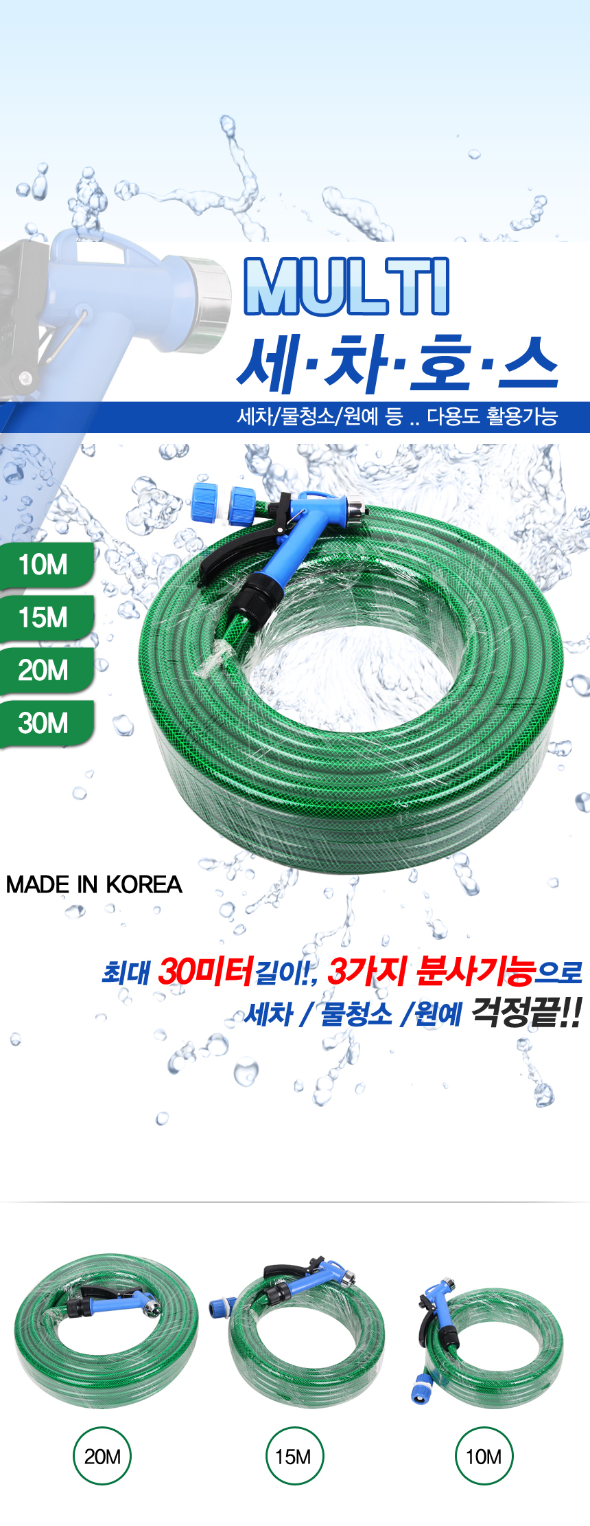 블랙라이거 다용도 멀티 세차호스 3가지 압력분사 시스템 20m 15m 10m > 기타