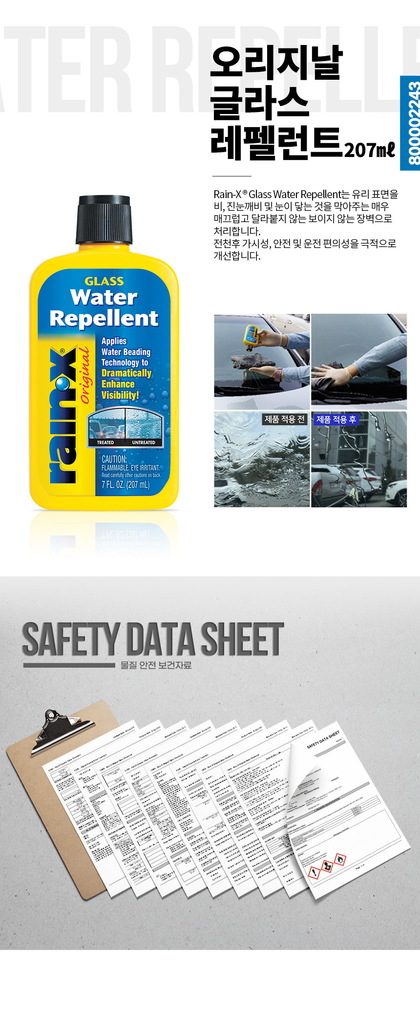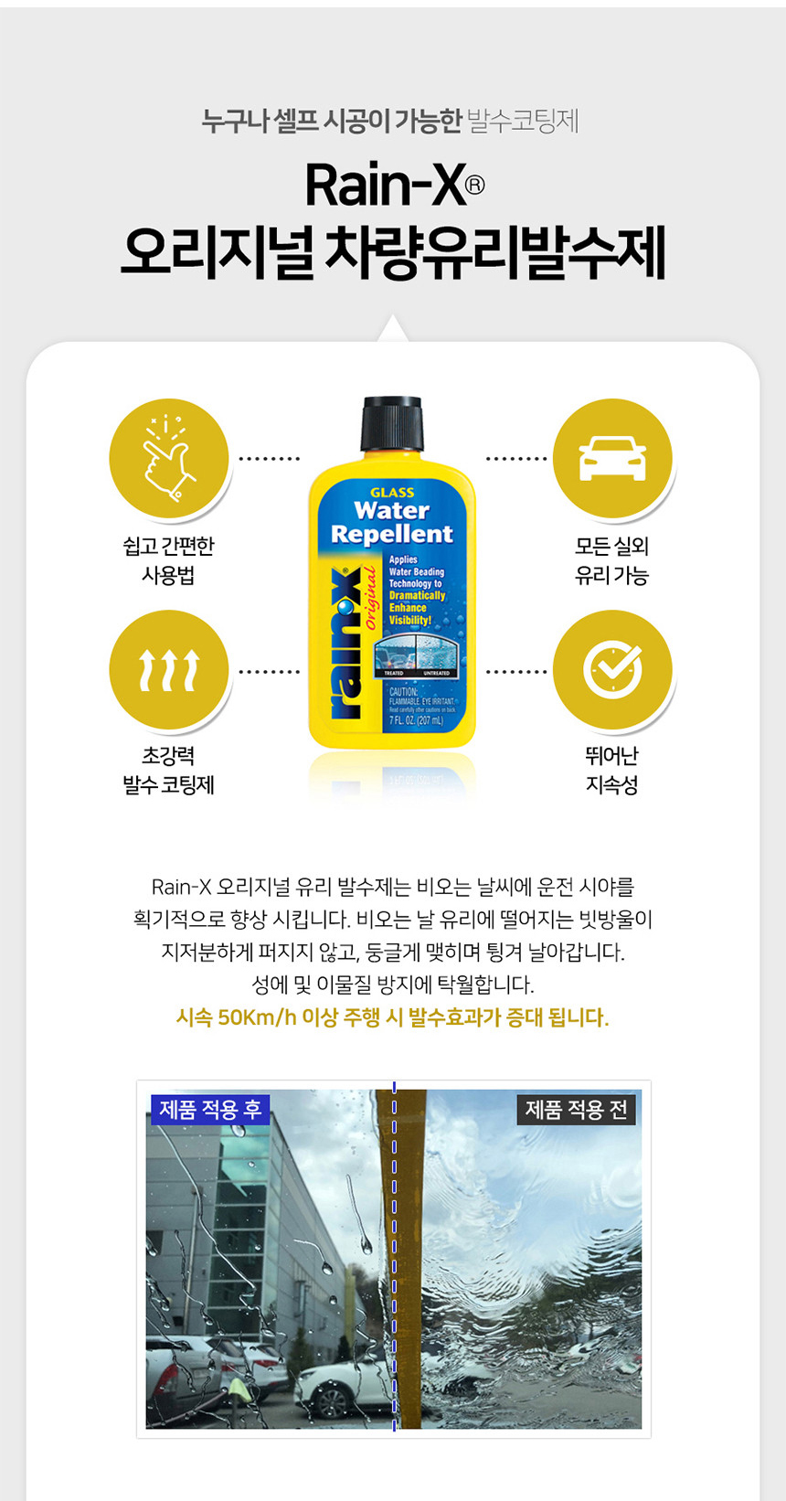 레인엑스 RAIN-X 오리지널 글라스 워터 레펠런트 207ml 유리 발수코팅제 요약정보 및 구매