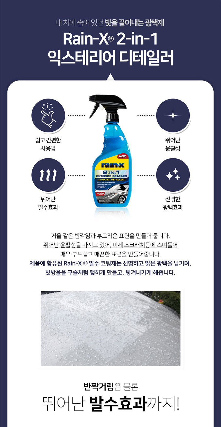 레인엑스 RAIN-X 2IN1 익스테리어 디테일러 680ml 외장 광택제 발수코팅 요약정보 및 구매
