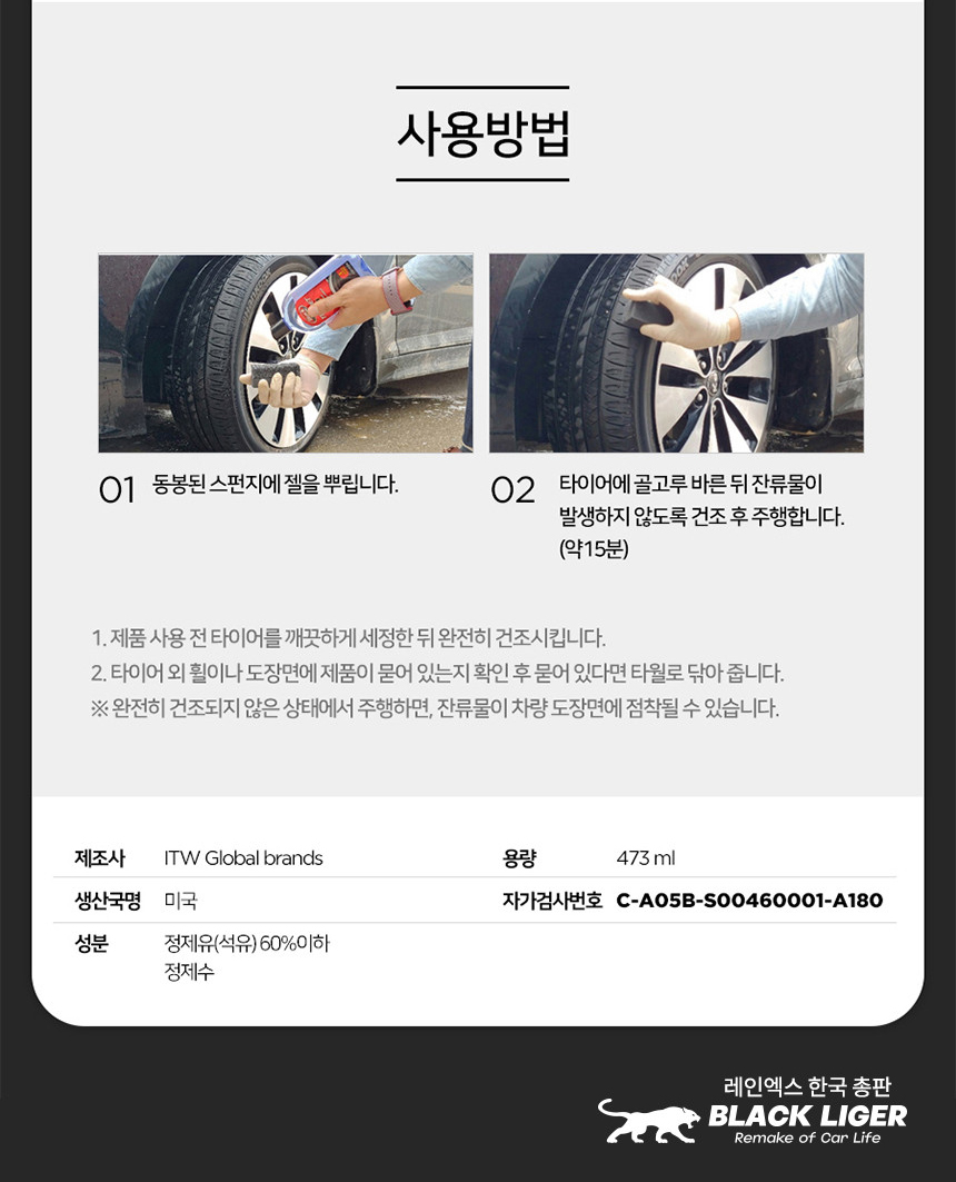 레인엑스 RAIN-X 블랙매직 타이어 웨트 젤 473ml 타이어 광택제 요약정보 및 구매