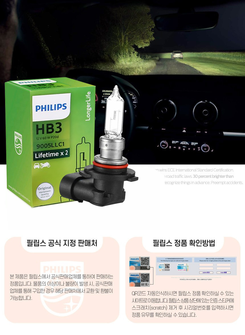 필립스 뉴 프리미엄 비전은 ECE 국제규격인증을 획득해 도로 교통법 기준에
