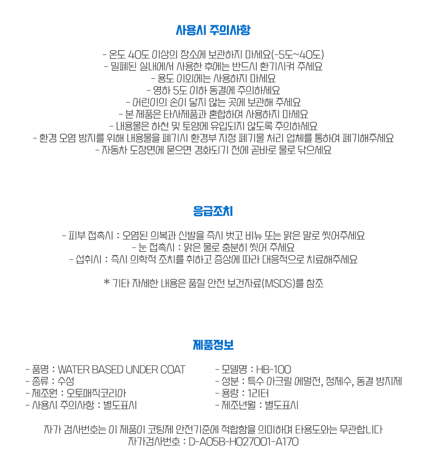 오토매직 수용성 언더코팅제 건식 1L HB-100 요약정보 및 구매