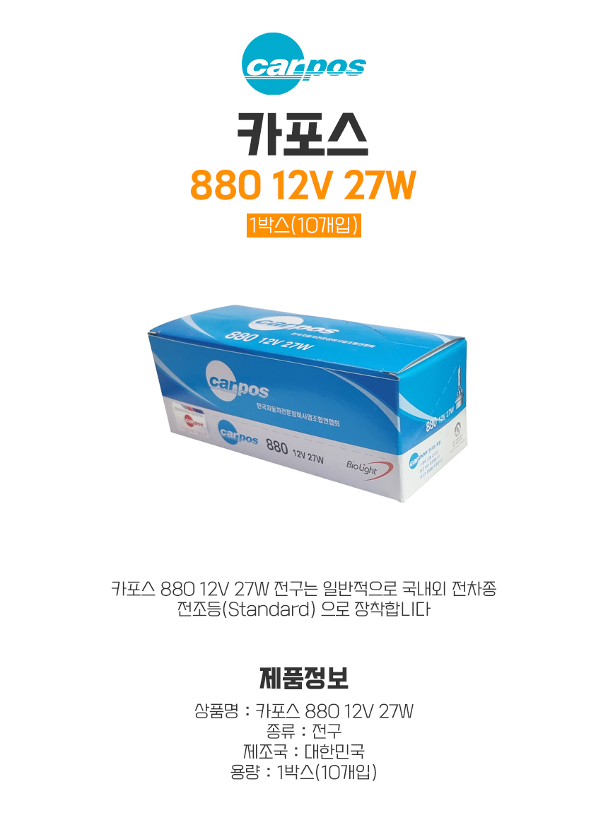 카포스 880 12V 27W 할로겐 전조등 안개등 자동차 전구 10개(1박스) 요약정보 및 구매