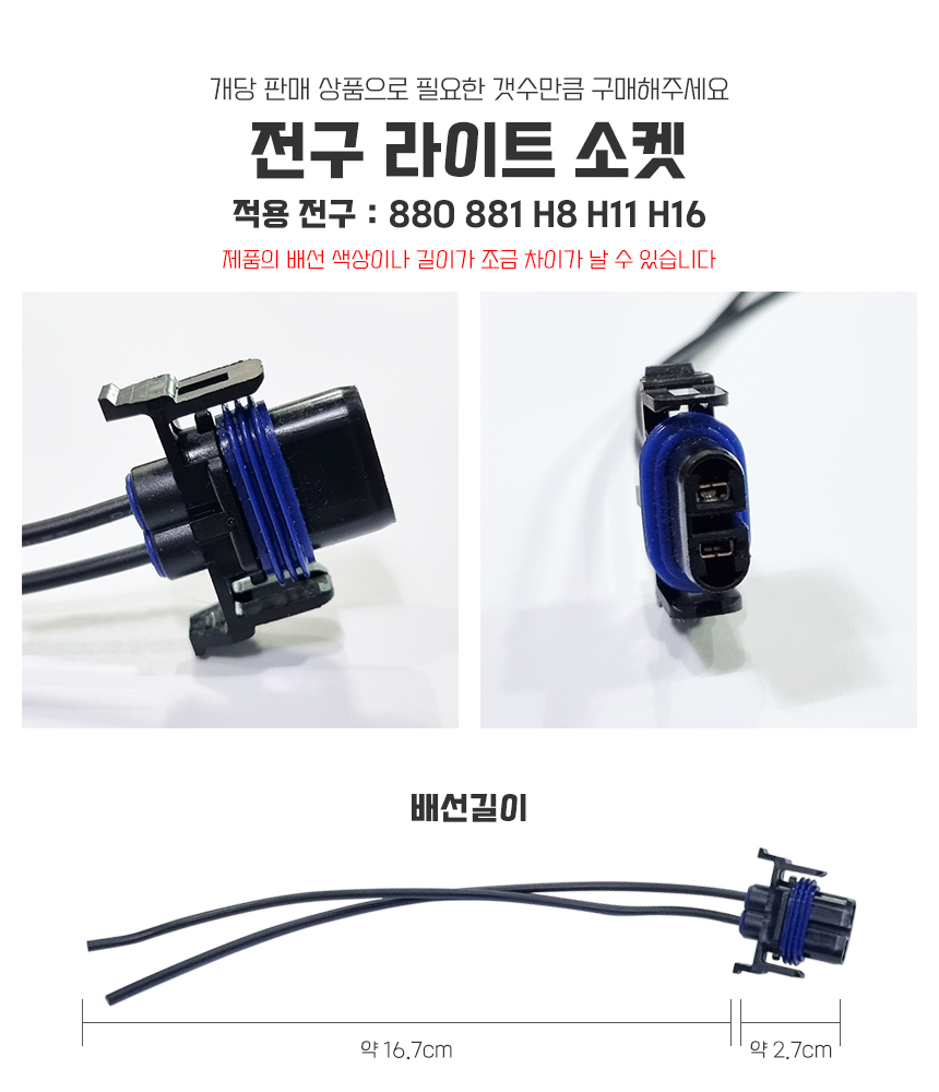 • 880 881 H8 H11 H16 안개등 소켓 라이트 커넥터 배선