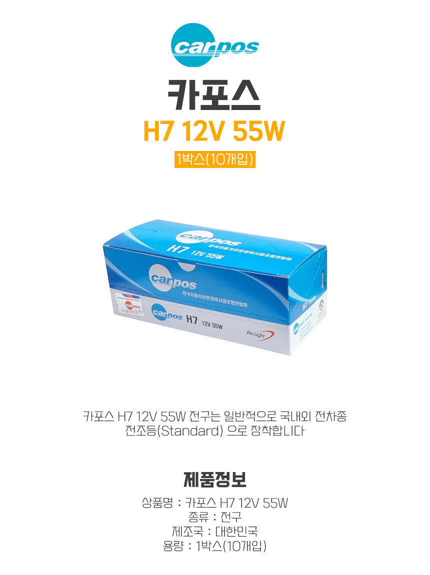 카포스 H7 12V 55W 할로겐 전조등 자동차 전구 10개(1박스) 요약정보 및 구매