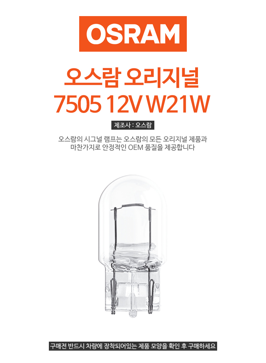 오스람 T20 싱글전구 7505 12V W21W 미등 시그널전구 깜빡이 낱개 1개 요약정보 및 구매