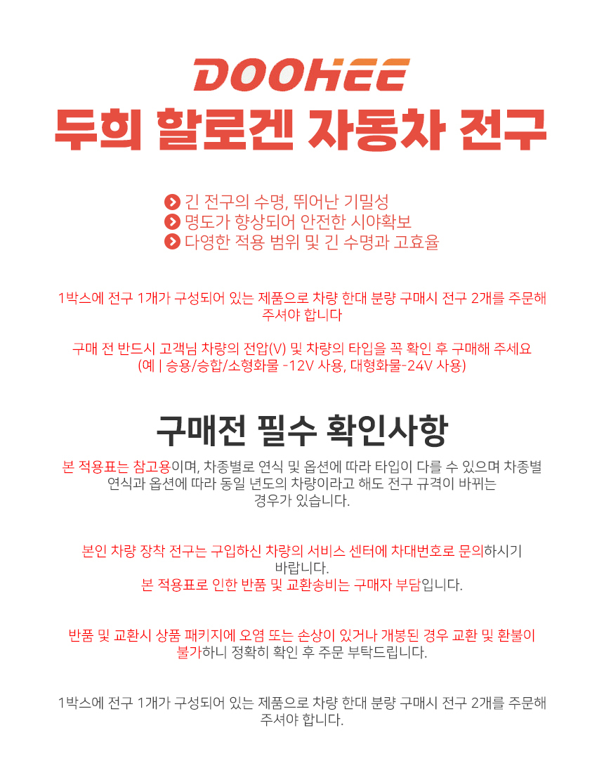 두희전구 H3 12V 55W 순정형 할로겐 자동차 안개등 요약정보 및 구매