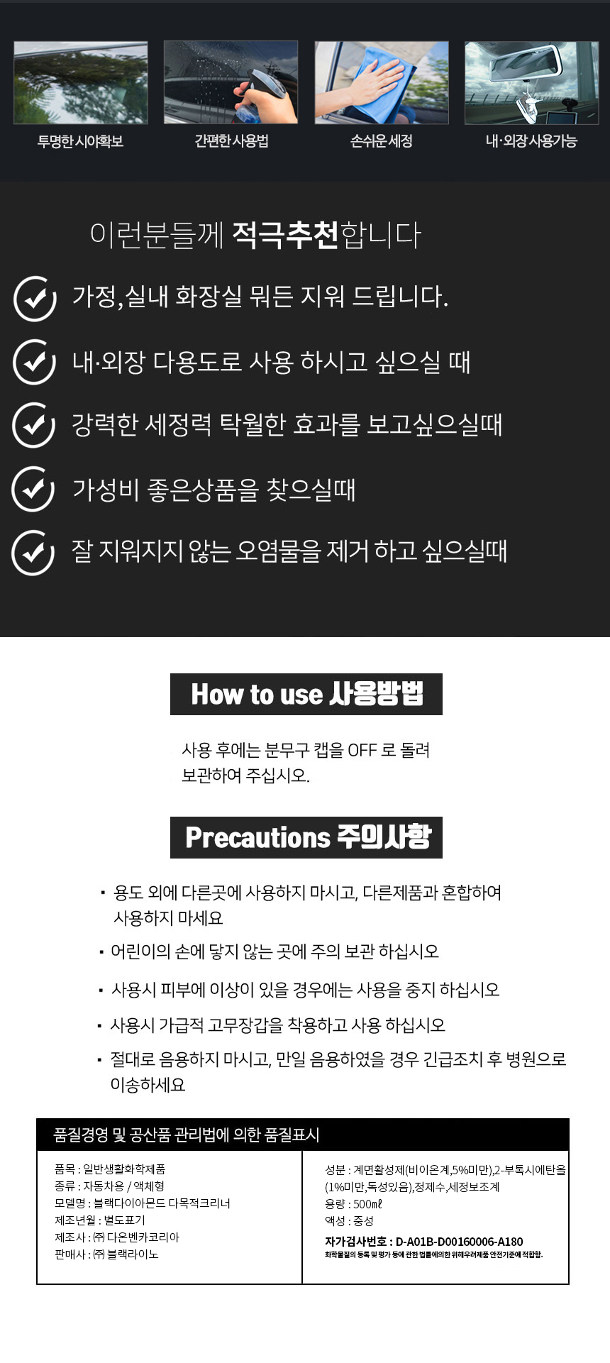 블랙다이아몬드 다용도세정제 500ml 요약정보 및 구매