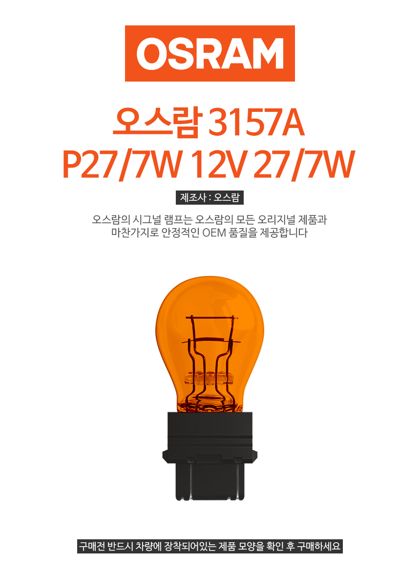 오스람 더블전구 3157A P27/7W 12V 27/7W 1개(낱개) 황색 더블소켓 > 자동차전구