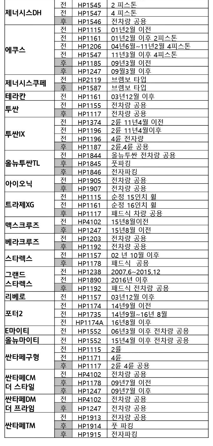 상신 하드론 기아 올 뉴 스포티지(더볼드) EPB(15년 9월~) 브레이크패드 뒤패드 HP1846 요약정보 및 구매