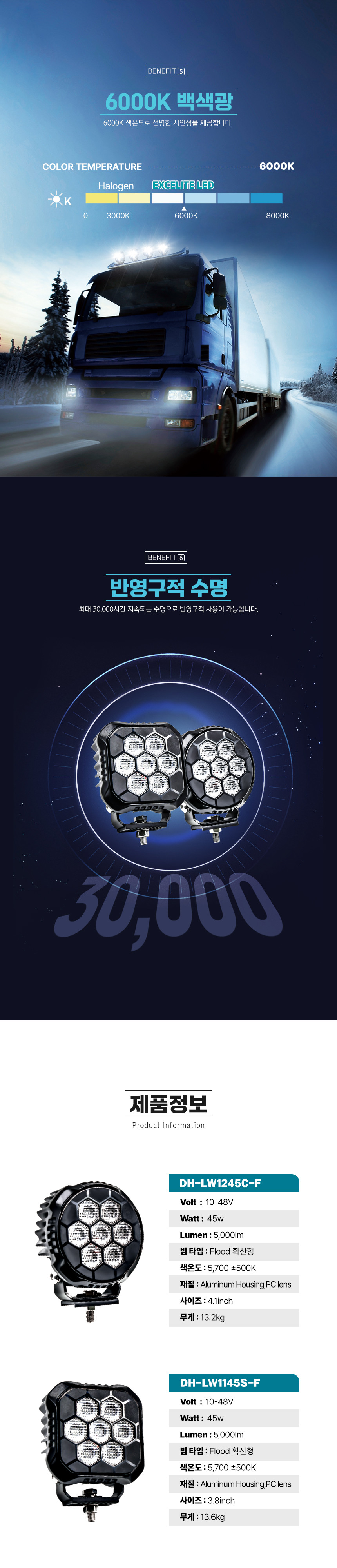 모델 합법인증 엑셀라이트 LED 뒷바퀴 조명등 12V 24V 버스 승합차 특장차 작업차량 IP69K