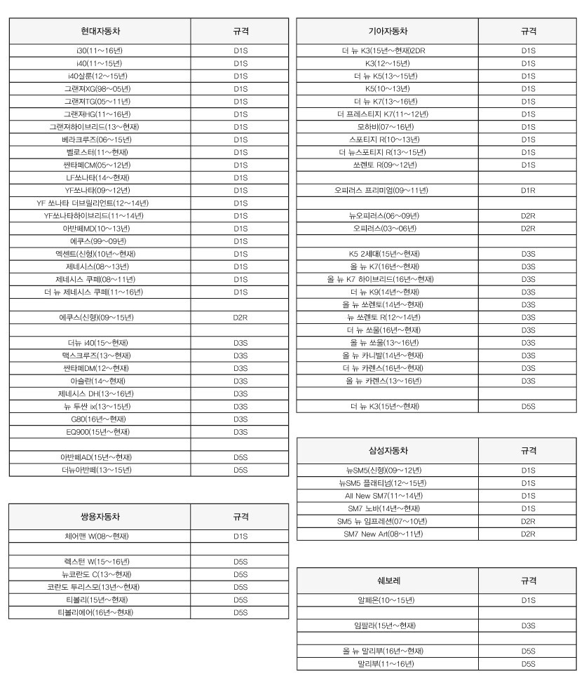 6. 차량의 연식과 등급에 따라 규격이 다를 수 있으니 주문전 차량의 규격을