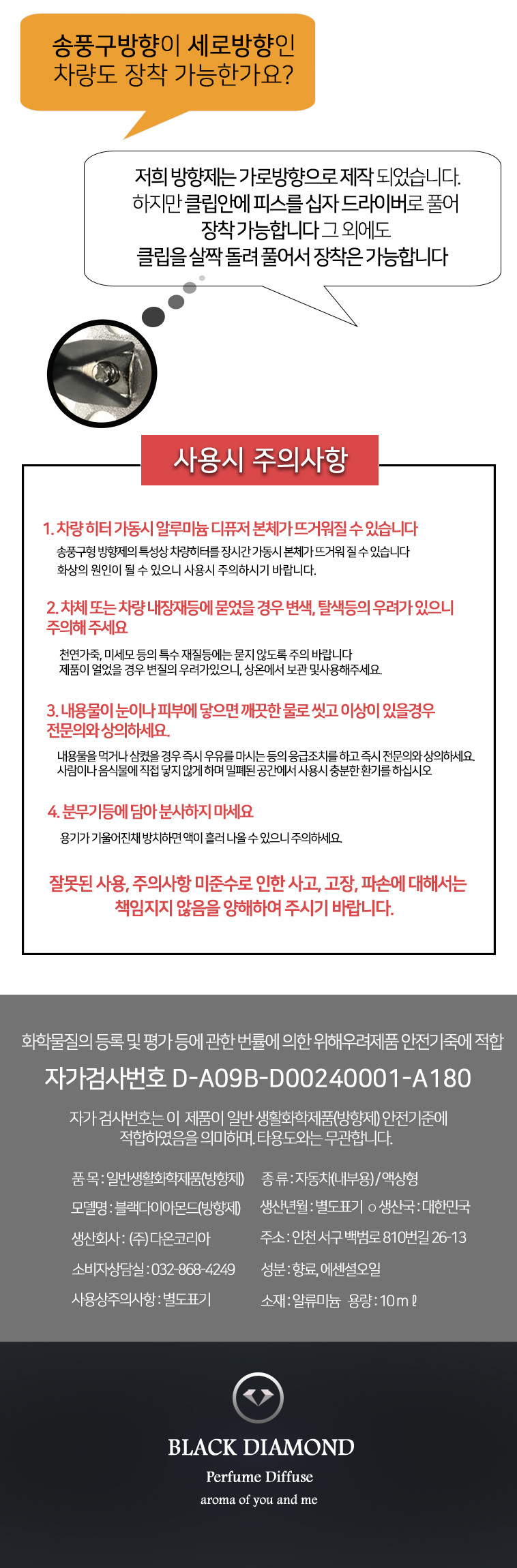 블랙다이아몬드 방향제는 컬러와 향의 조화에 맞게끔