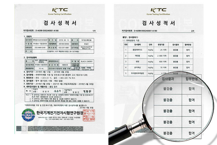 인증을 받았으며 변성물질을 사용하지 않았습니다