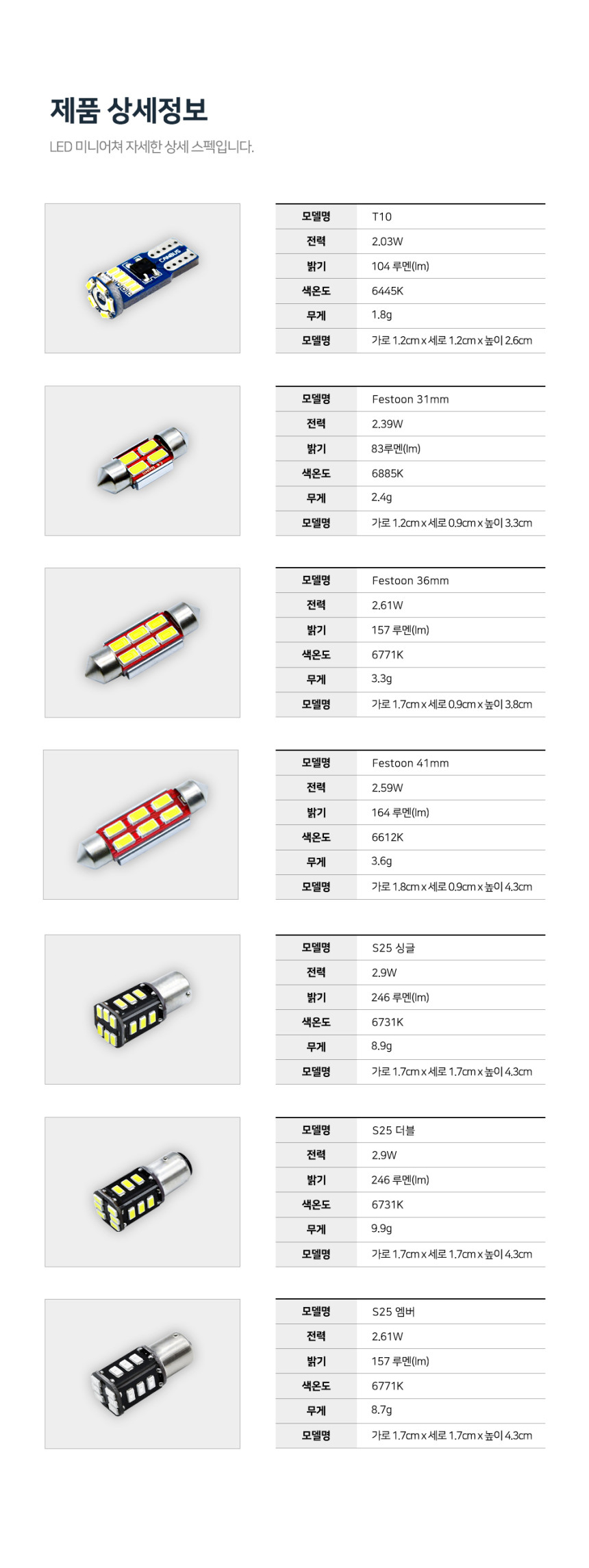 엑셀라이트 자동차 실내등 LED Festoon 36mm 2개세트, 중앙실내등 글로브박스등, 트렁크등 요약정보 및 구매