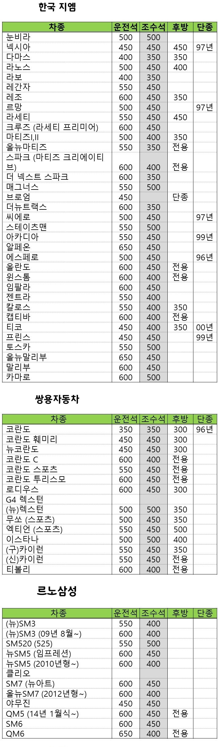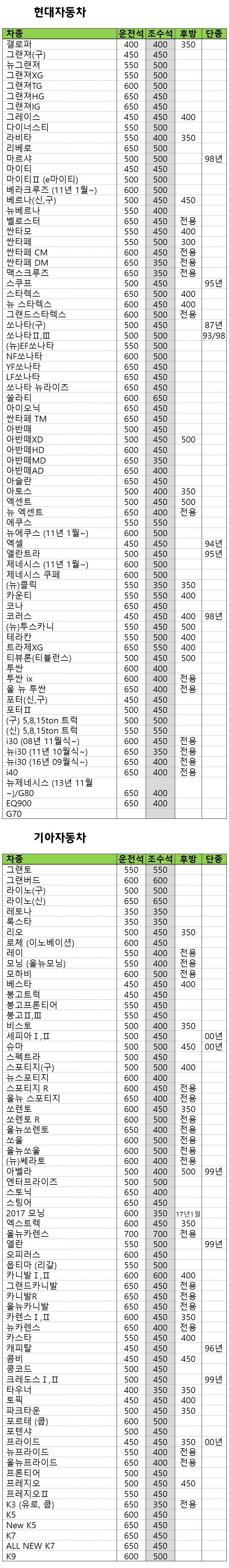 i30, 베라크루즈, QM5, 베리타스, 체어맨, 뉴체어맨, 체어맨 W, 제네시스, 아베오 등은 전용 와이퍼를 사용하세요.