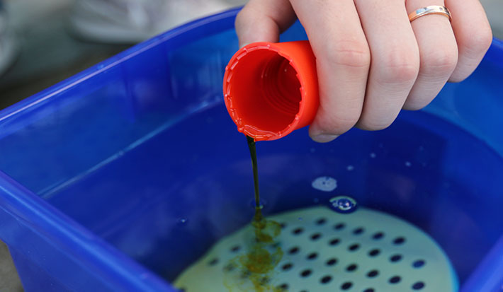 10L 의 물에 세차샴푸 50ml(계량컵 2컵 분량)를 잘 희석시킵니다.