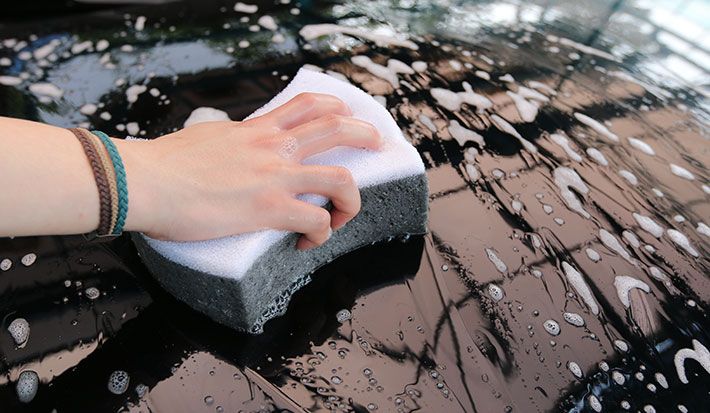 소낙스 멀티 스펀지에 희석액을 충분히 묻혀 세차를 합니다.