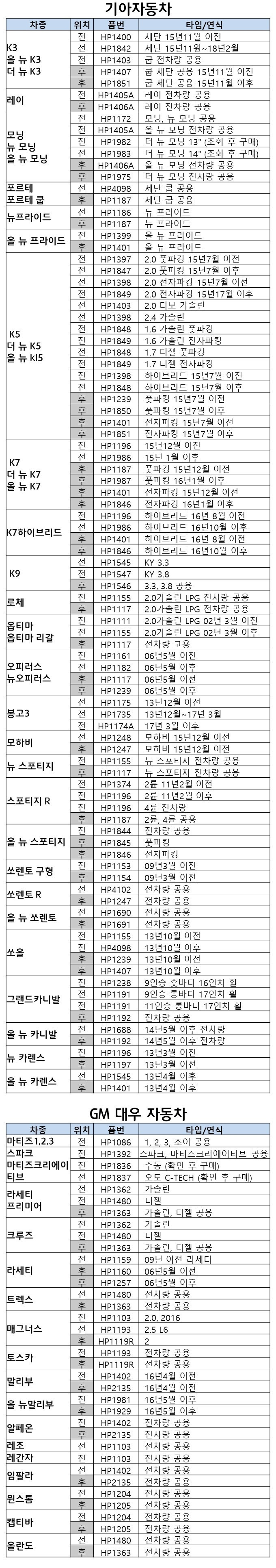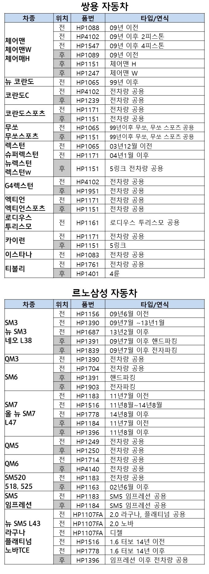 • 해당 적용표에서 차종 하드론 (HP) 품번을 찾아 주문하시면 됩니다.