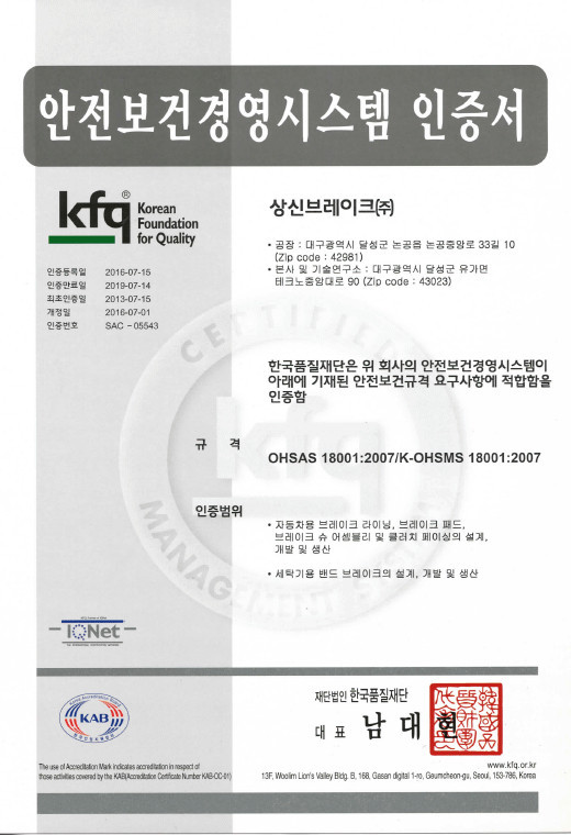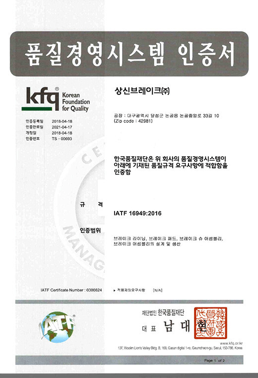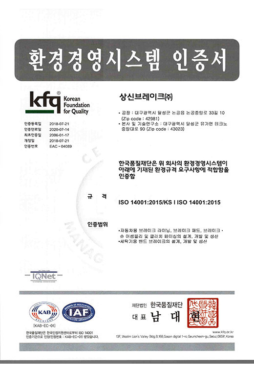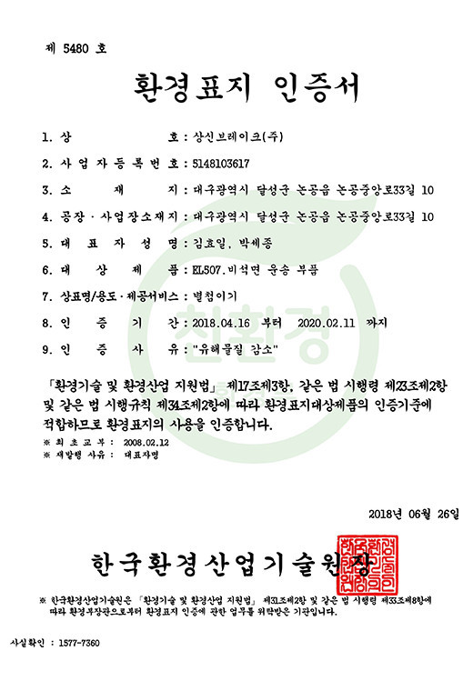 • 상신브레이크 규정상 브레이크 소음과 분진은 제품 불량으로 인정되지 않는 점 양해바랍니다.