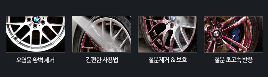 휠의 녹, 찌든때, 철분 등을 가볍게 제거