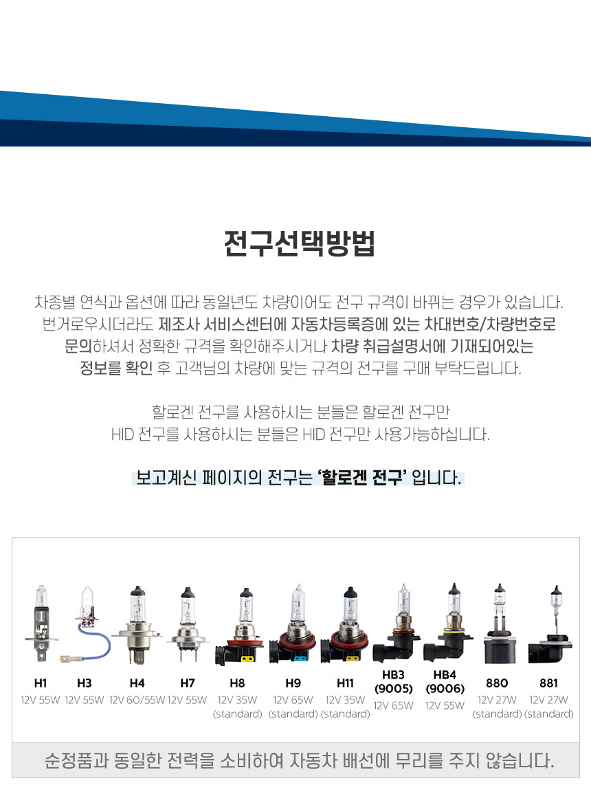 구매하시려는 전구의 규격을 정확히 확인해주시거나