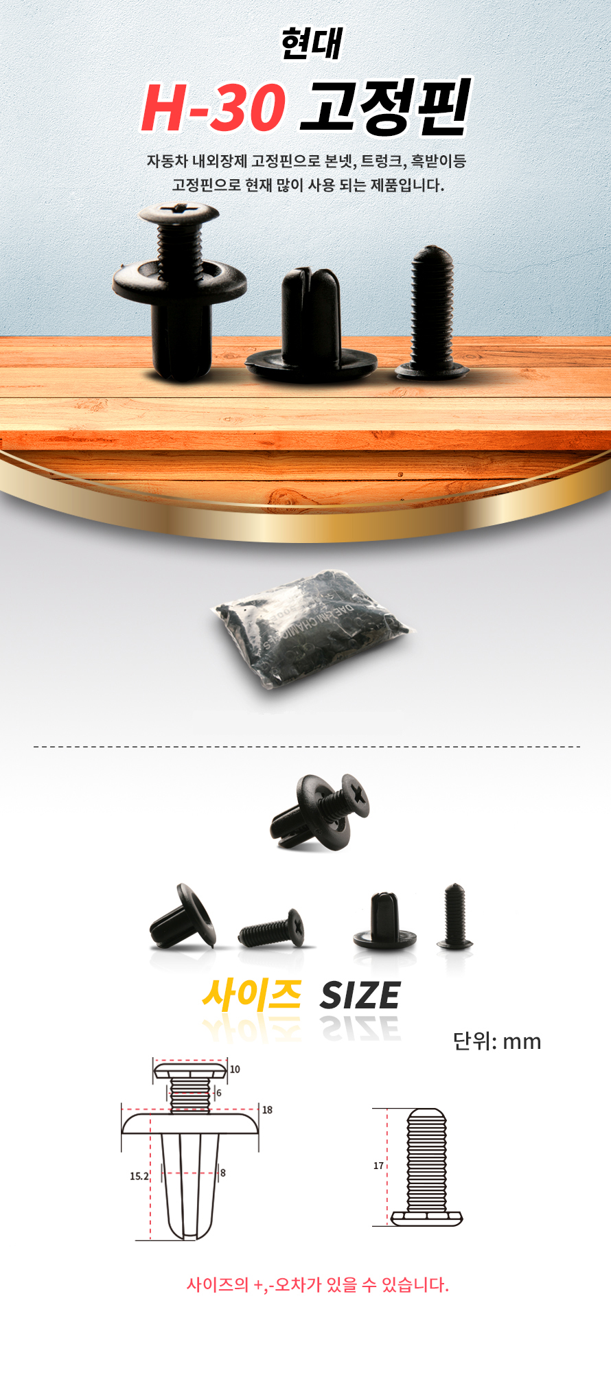 H-30 1봉(50개) 범퍼 고정핀 속핀 자동차핀 우찌핀 DIY 요약정보 및 구매