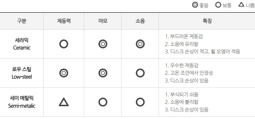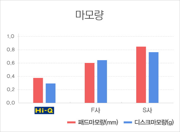 하이큐는 철 성분 소재의 사용을 대폭 줄여 디스크 로터의 대면 손상률을 최소화시킨 제품입니다.