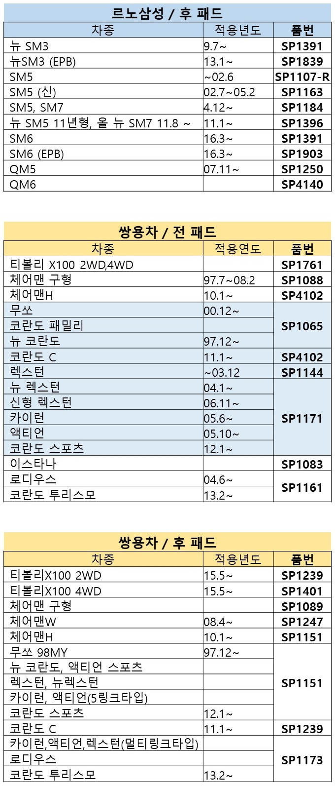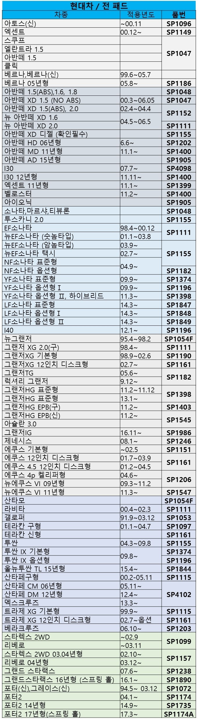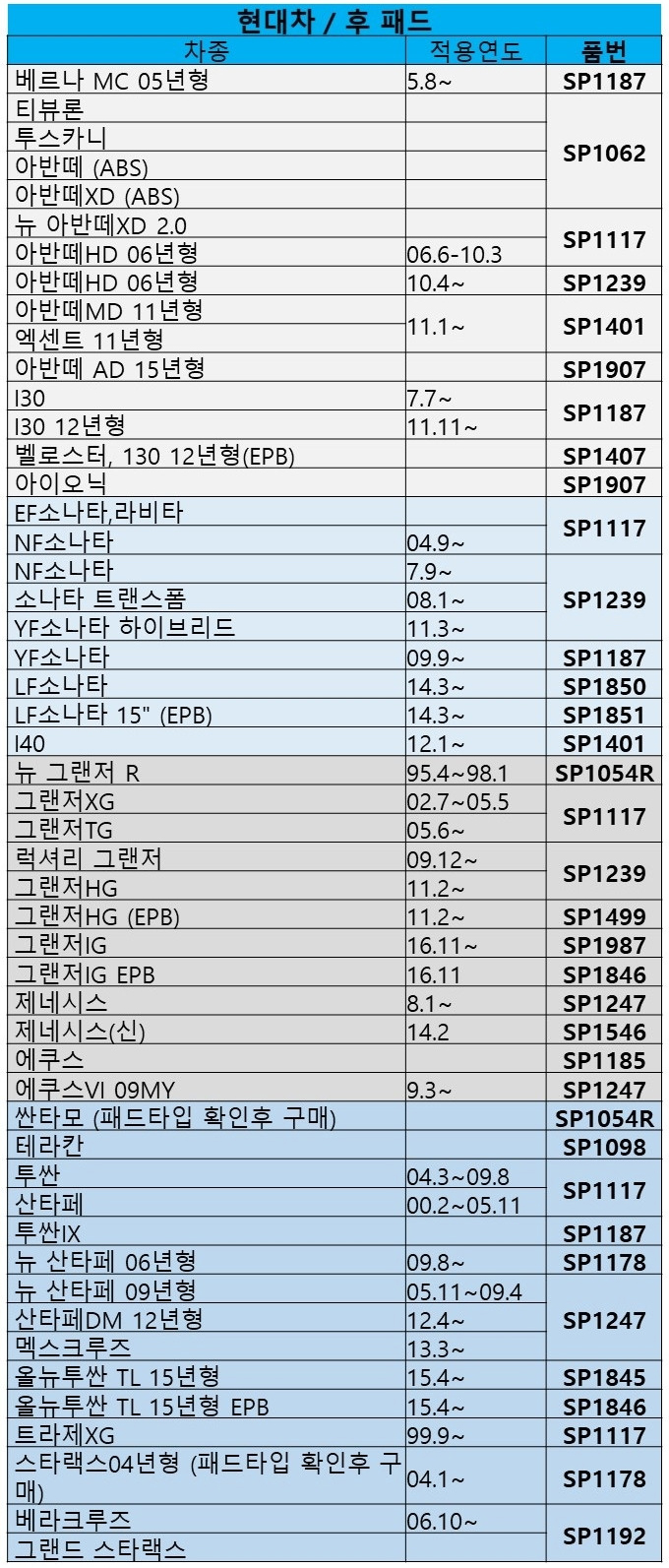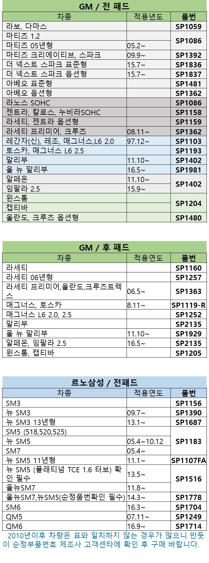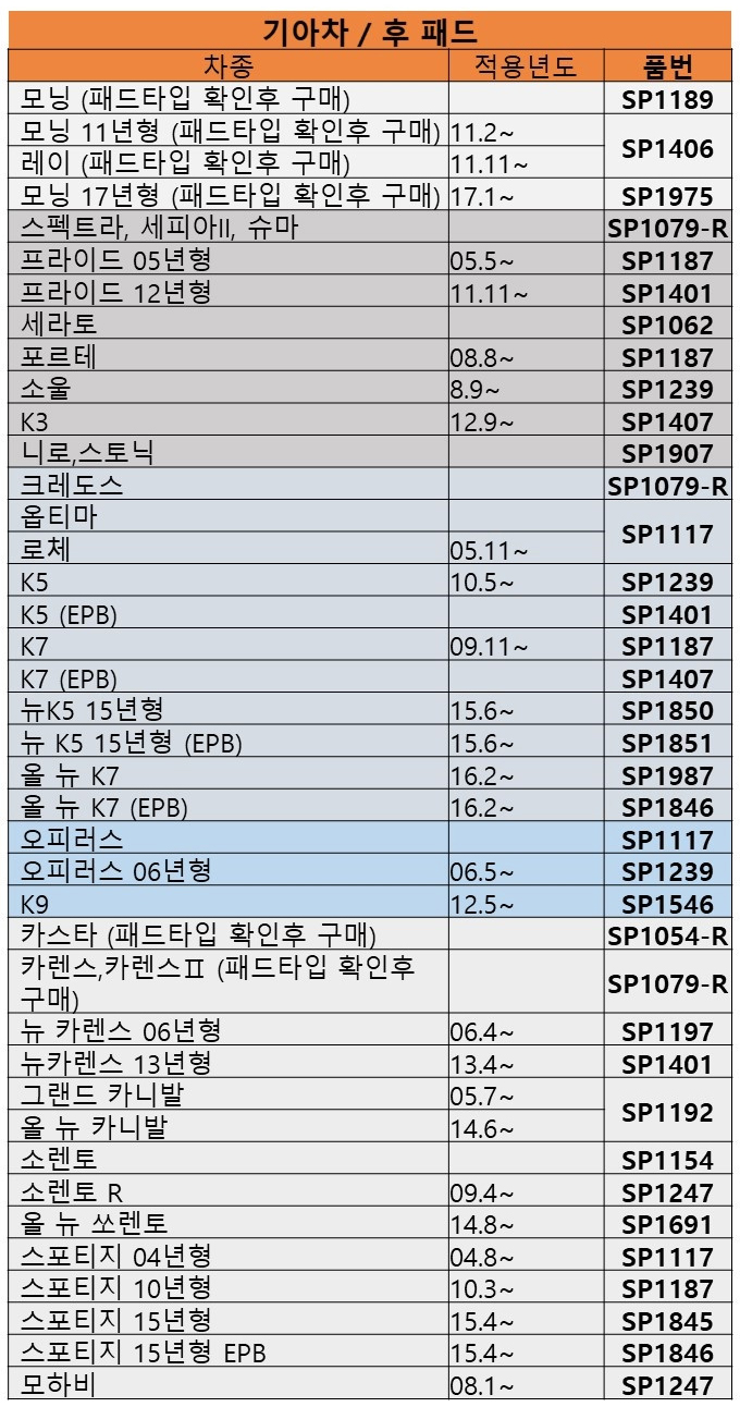 적용표는 참고용이니 반드시 직접 확인하시고 구매해주세요