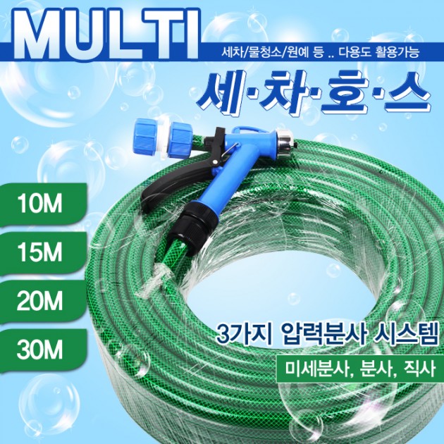 블랙라이거 다용도 멀티 세차호스 3가지 압력분사 시스템 20m 15m 10m > 기타