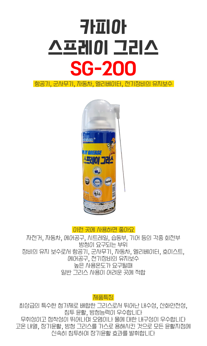 카피아 스프레이 물그리스 SG-200 장기윤활, 방청, 뿌르는 구리스 420ml x 24개 > 케미칼류