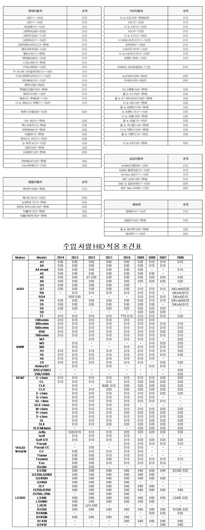 전세계 명품차량 (벤츠, BMW, 아우디, 중대형 차량 등) 표준 램프입니다