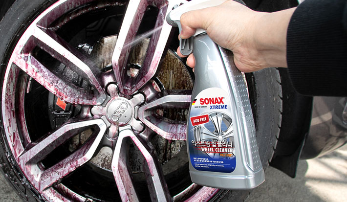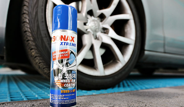 휠을 세척한 후 소낙스 익스트림 휠 코팅제를