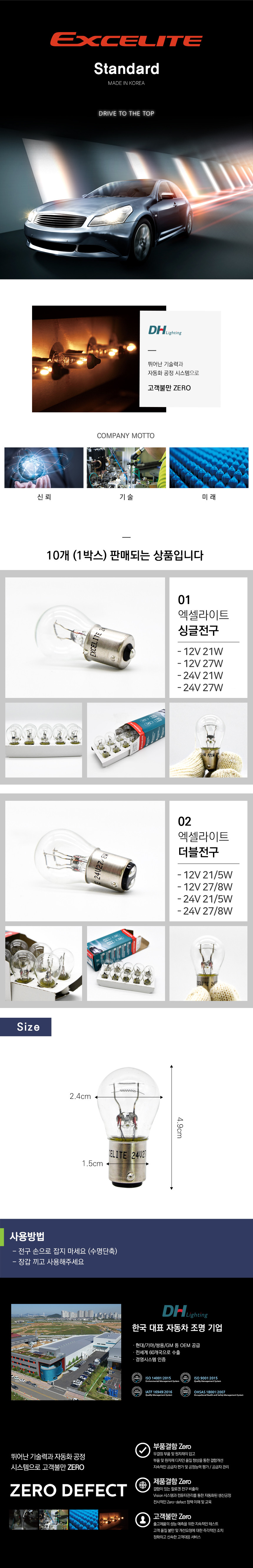 엑셀라이트 싱글전구 24V 21W 시그널 깜빡이 1박스 10개입 > 자동차전구