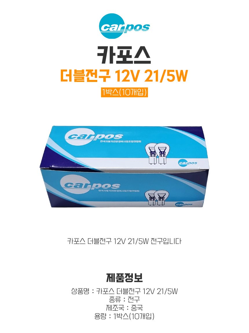 카포스 더블전구 12V 21/5W 투명 10개 세트 브레이크전구등 후미등 후진등 > 자동차전구