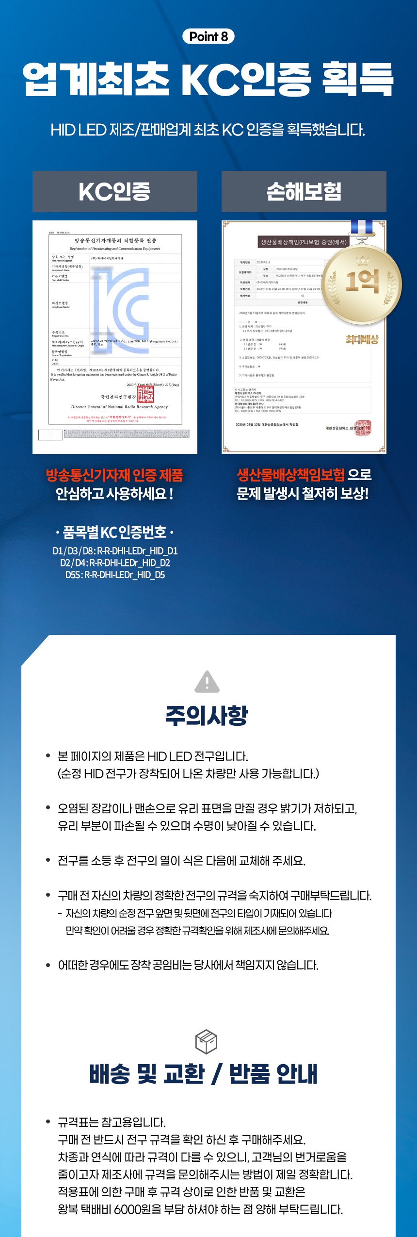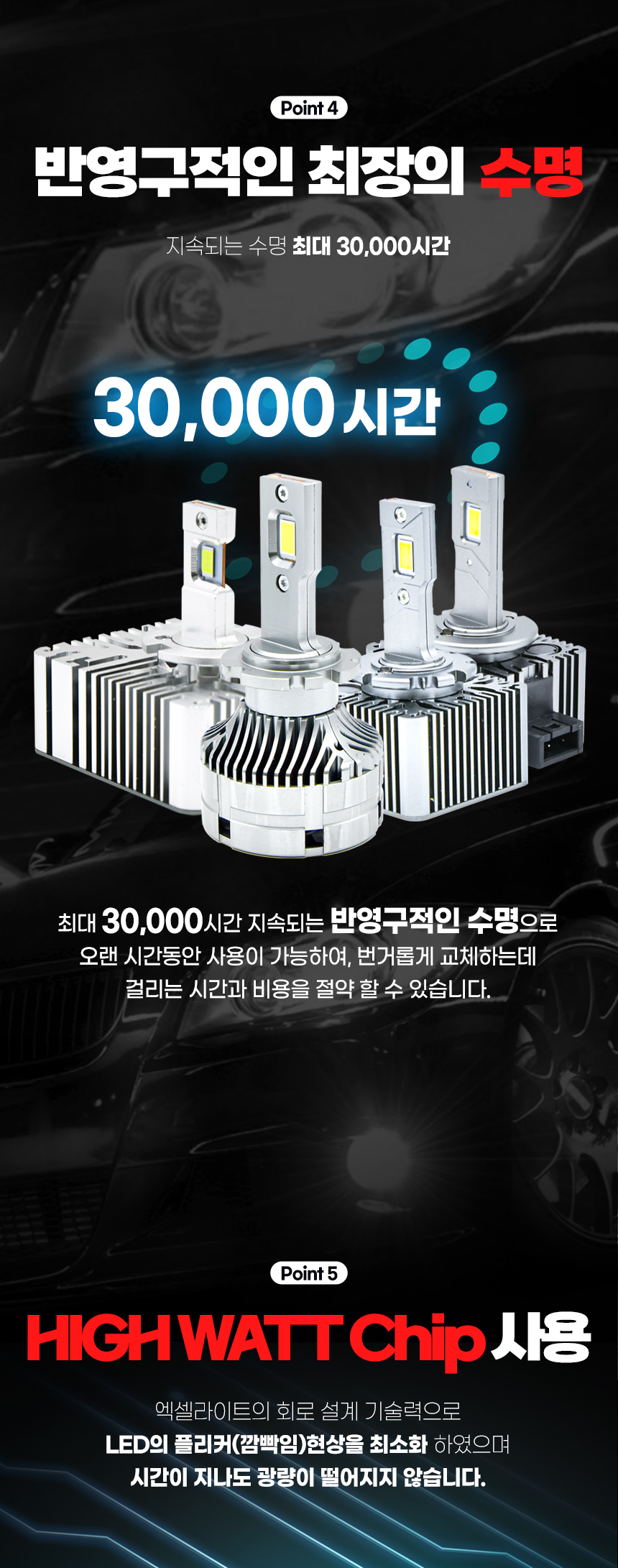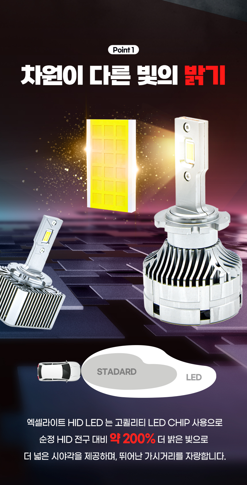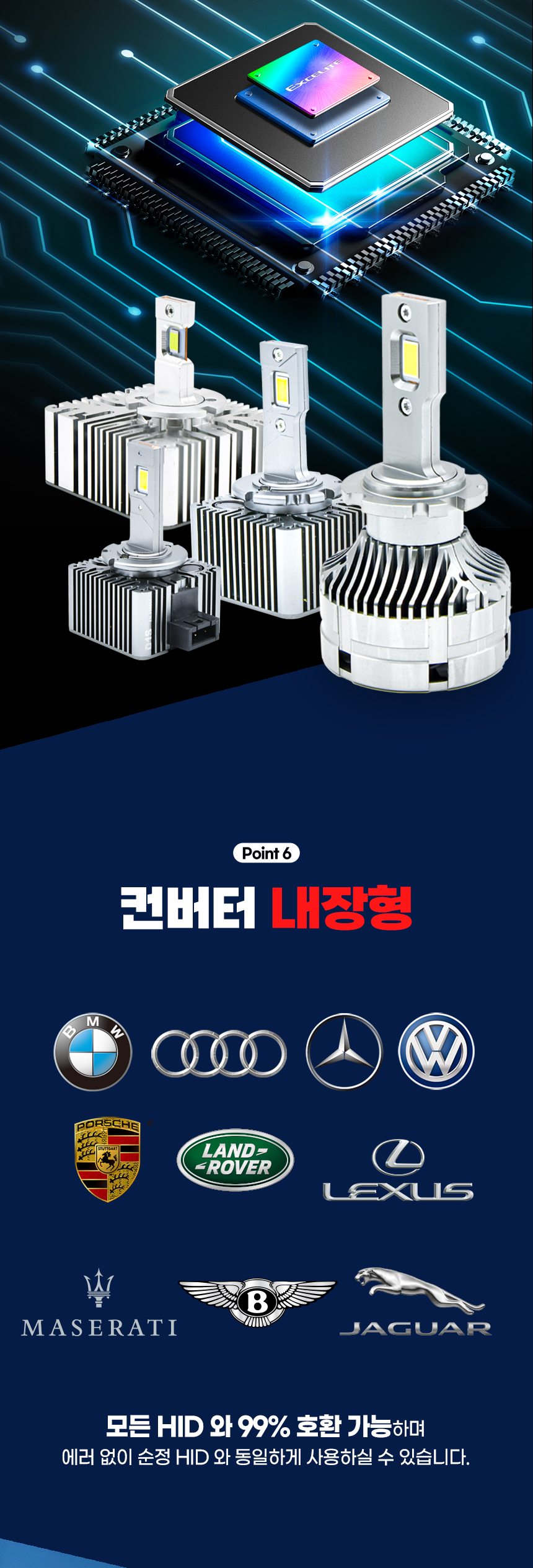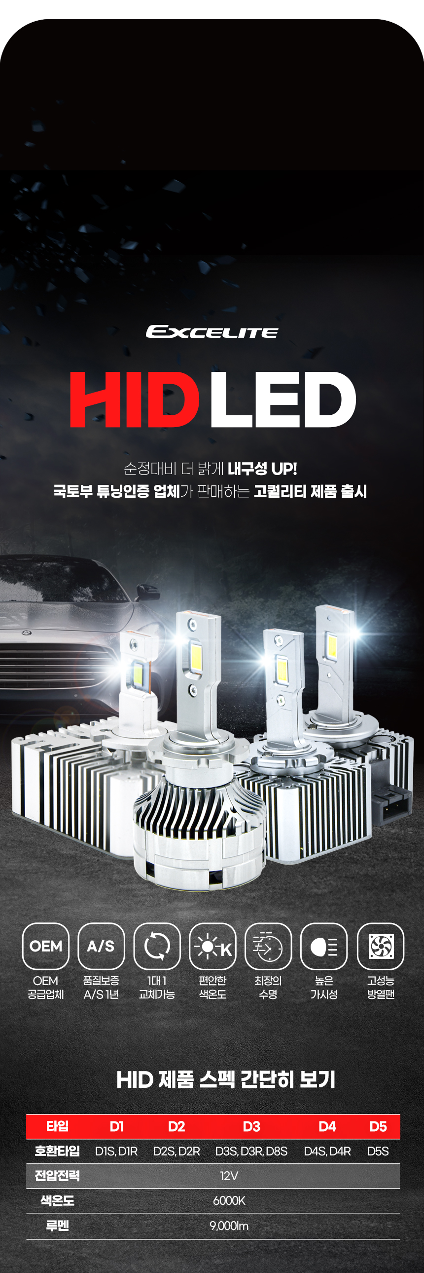 엑셀라이트 6000K D3(D3S D3R D8S) LED HID 전조등 헤드램프 전구 벌브 (1SET 2PCS) > 자동차전구