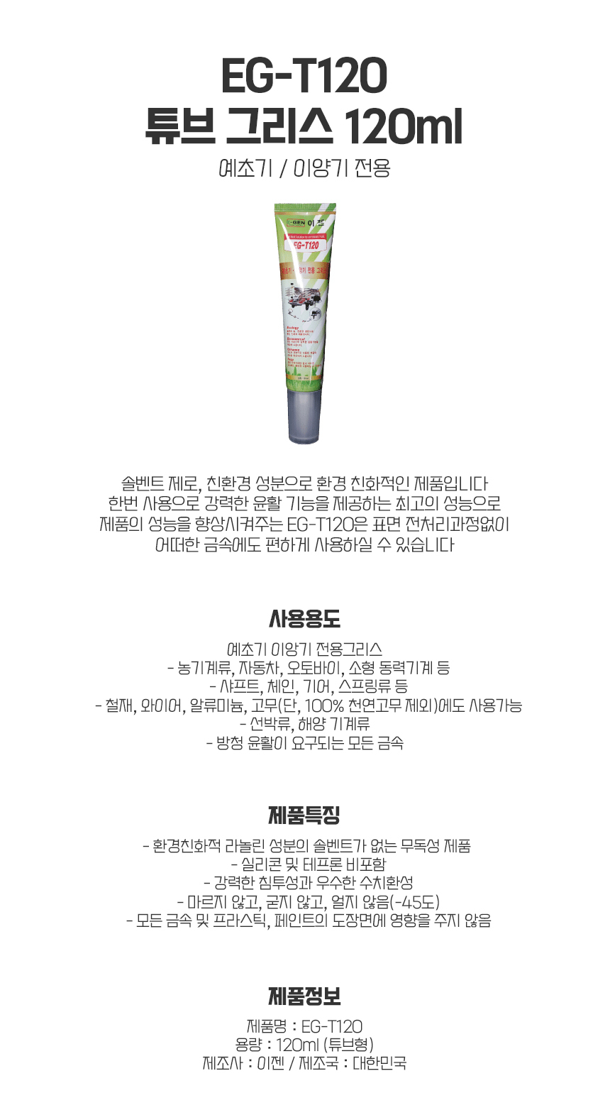 이젠 예초기 이앙기 전용 그리스(EG-T120) 벌초기계 제초기 오토바이 자전거 구리스 윤활유 요약정보 및 구매