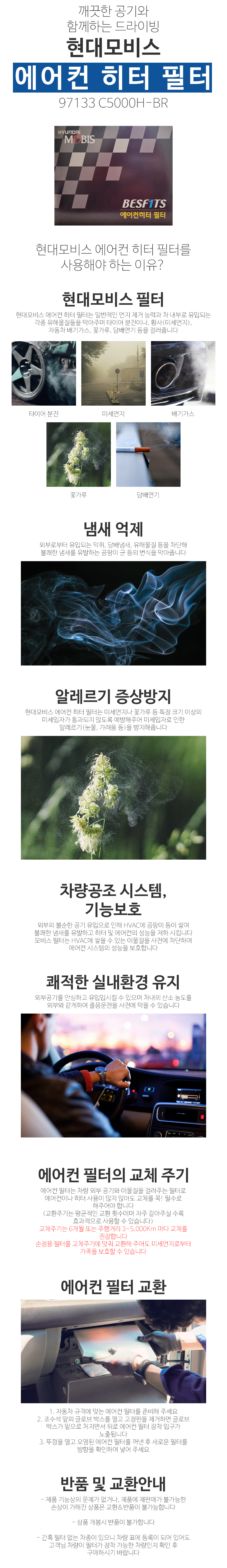 현대모비스 베스핏츠 올뉴쏘렌토 / 더뉴쏘렌토 / 모하비 더마스터 에어컨 히터 필터 97133 C5000H-BR 요약정보 및 구매