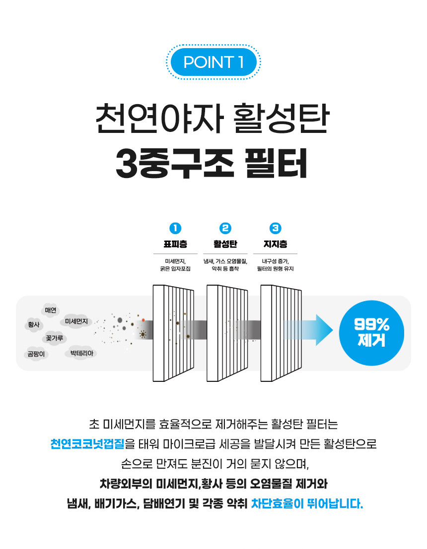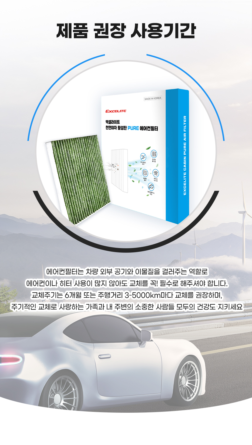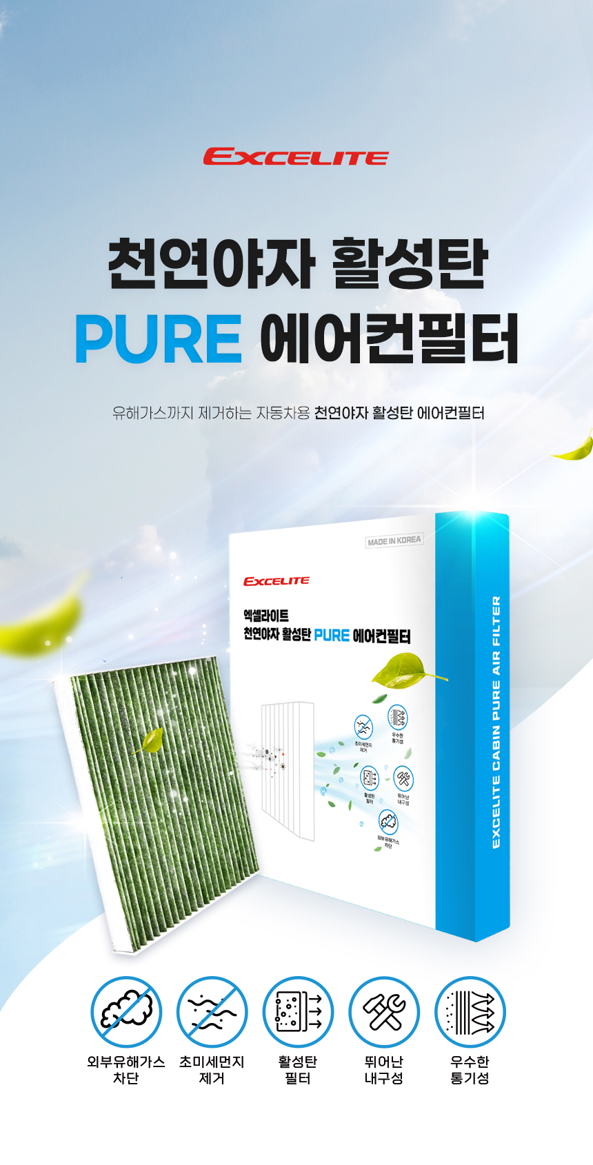 엑셀라이트 천연야자 활성탄 PURE 차량용 에어컨필터 > 에어컨히터 필터