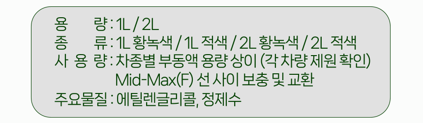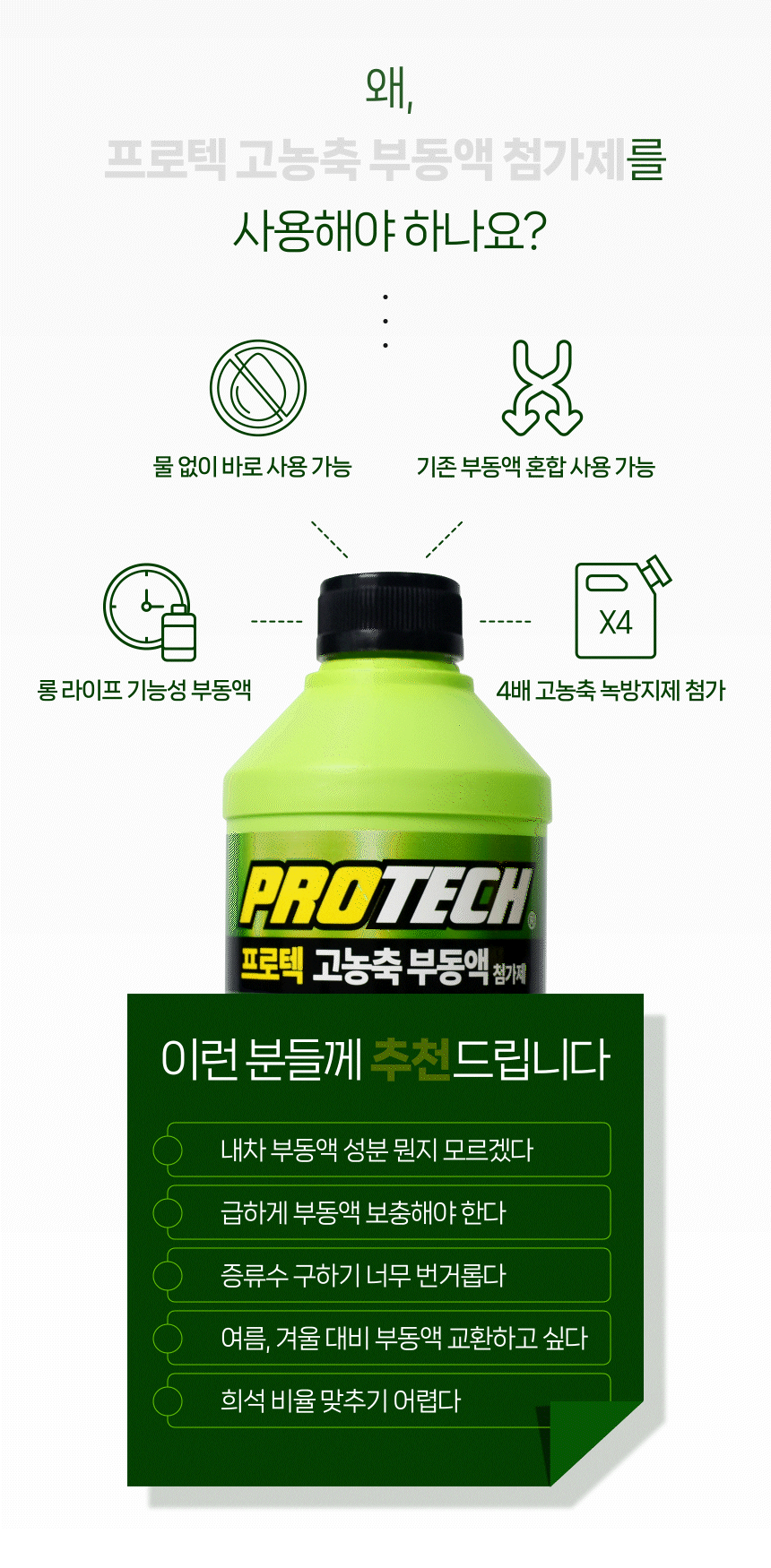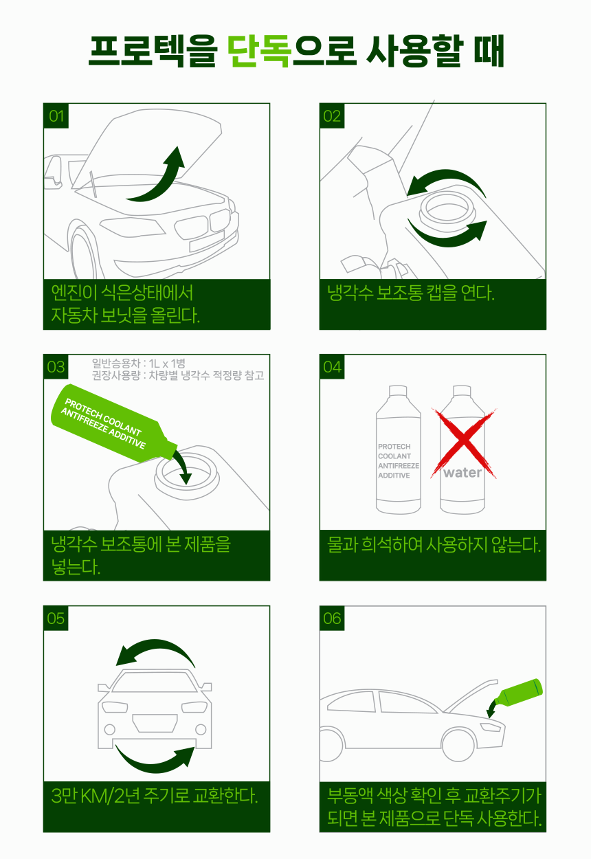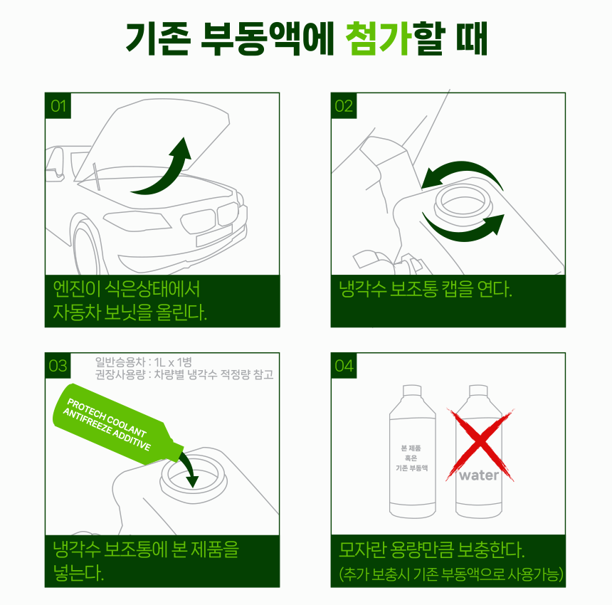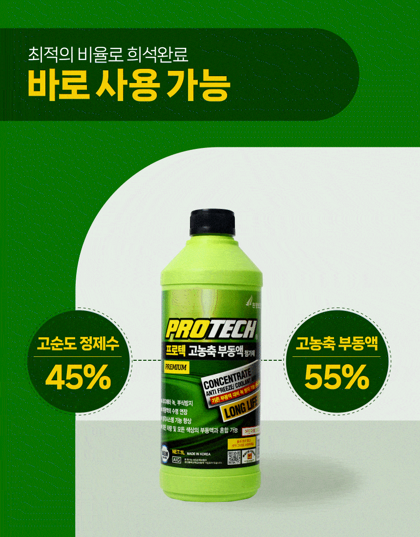 대림기업 프로텍 고농축 부동액 첨가제 1L /녹색/ 물없이 바로 사용 혼합사용가능 부동액 요약정보 및 구매