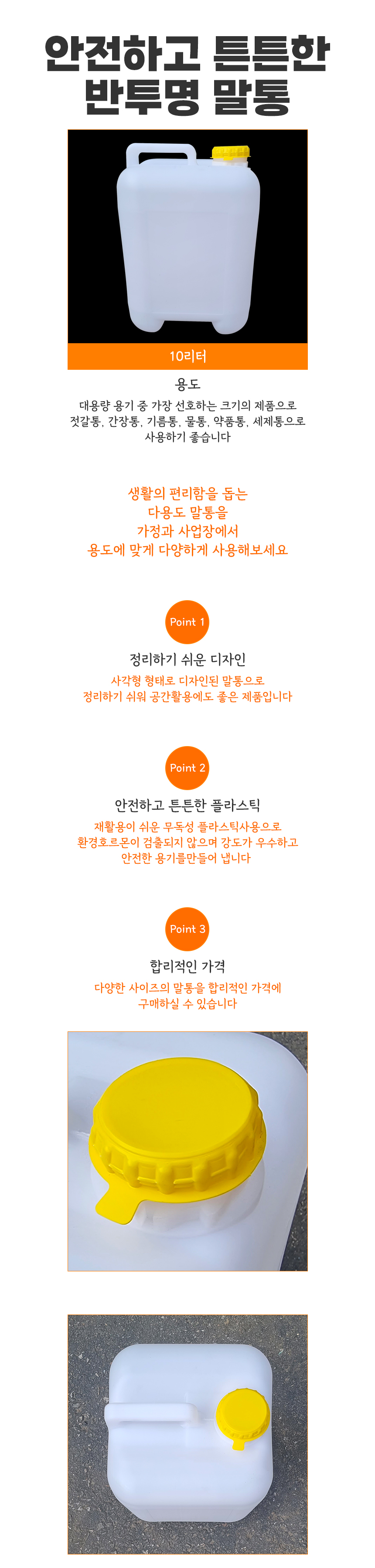 • 10리터 반투명 말통 용기 젓갈통 간장통 기름통 물통 약품통 세제통 빈통 빈말통
